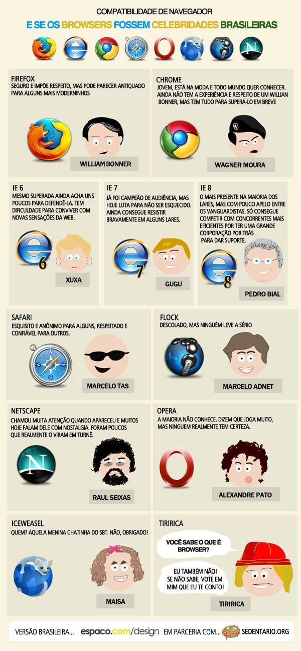 Semana passada postamos aqui “E se os browsers fossem celebridades”.Gerou muitas risadas e inspirou eu e o Duquian do sedentário (s&h) à criar uma versão com algumas das celebridades brasileiras.