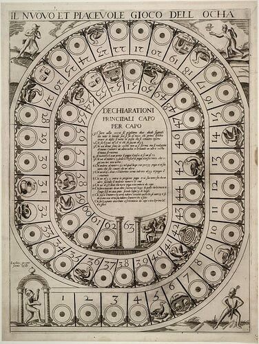 A imagem ao lado é parte da compilação de mais de 30 jogos de tabuleiro vista pelo Pacha no site BibliOdyssey. São ricamente ilustrados e ao clicar em cada, a versão ampliada é mostrada, apresentando os ricos detalhes.
