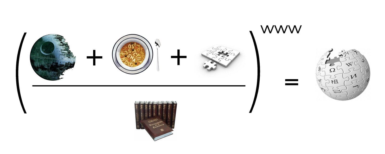 Portanto, quem duvidaria que Estrela da morte + quebra cabeça + sopa de letrinhas divido por enciclopédia = wikipedia