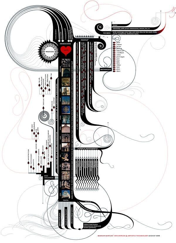 A mulher por trás do melhor Ndesign de todos os tempos do meu tempo, debutou a pouco mais de um mês no ideiafixa, e a alguns dias atrás postou 2 mapas de influência maravilhosos. Dou destaque para o mapa da extraterrestre Marian Bantjes. Extremamente detalhado e riquíssimo em detalhes.