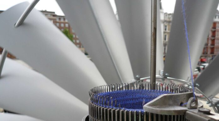 A idéia fantástica é da designer holandesa Merel Karhof que através da energia dos ventos gerada por um moinho, tricota, vários cachecóis.